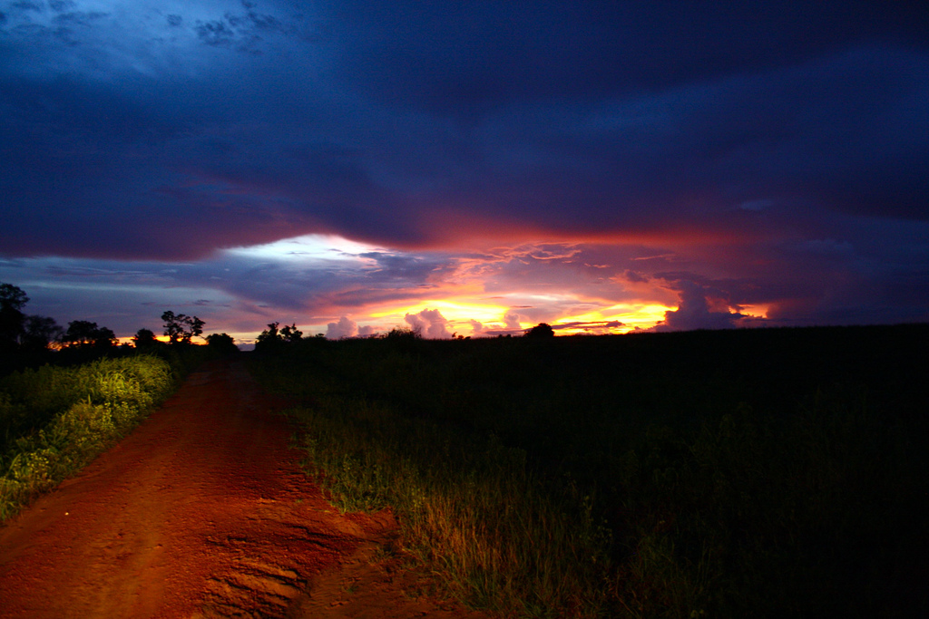 En brousse, en Gambie, retour à Toubacouta, un beau spectacle après être restés 3h embourbés...