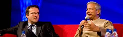 Après avoir suivi le Mastere Développement Durable, HEC nous propose pour la première fois de suivre une spécialisation. Une large majorité des étudiants du Mastere a choisi de s’engager au sein de la chaire Social Business / Entreprise et Pauvreté. Cette chaire lancée par HEC Paris et Danone est co-présidée par deux de nos héros, à savoir Mohammad Yunus, Fondateur de la première banque de micro-crédit et prix Nobel de la paix 2006 et Martin Hirsch, ancien Président d’Emmaüs et aujourd’hui Haut Commissaire aux solidarités actives et à la jeunesse.